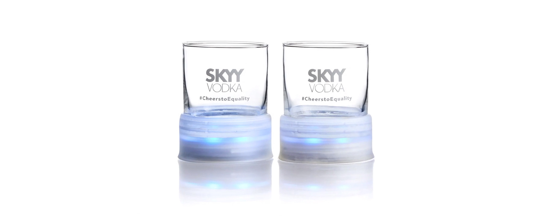 At MediaMonks we helped SKYY Vodka to embbed a cocktail glass with custom technology which would trigger a camera when people would ‘cheers’ their glasses together. The photos would automatically post to social media together with a nice message to support marriage equality. Attributions: Enclosure System, 3D Modeling